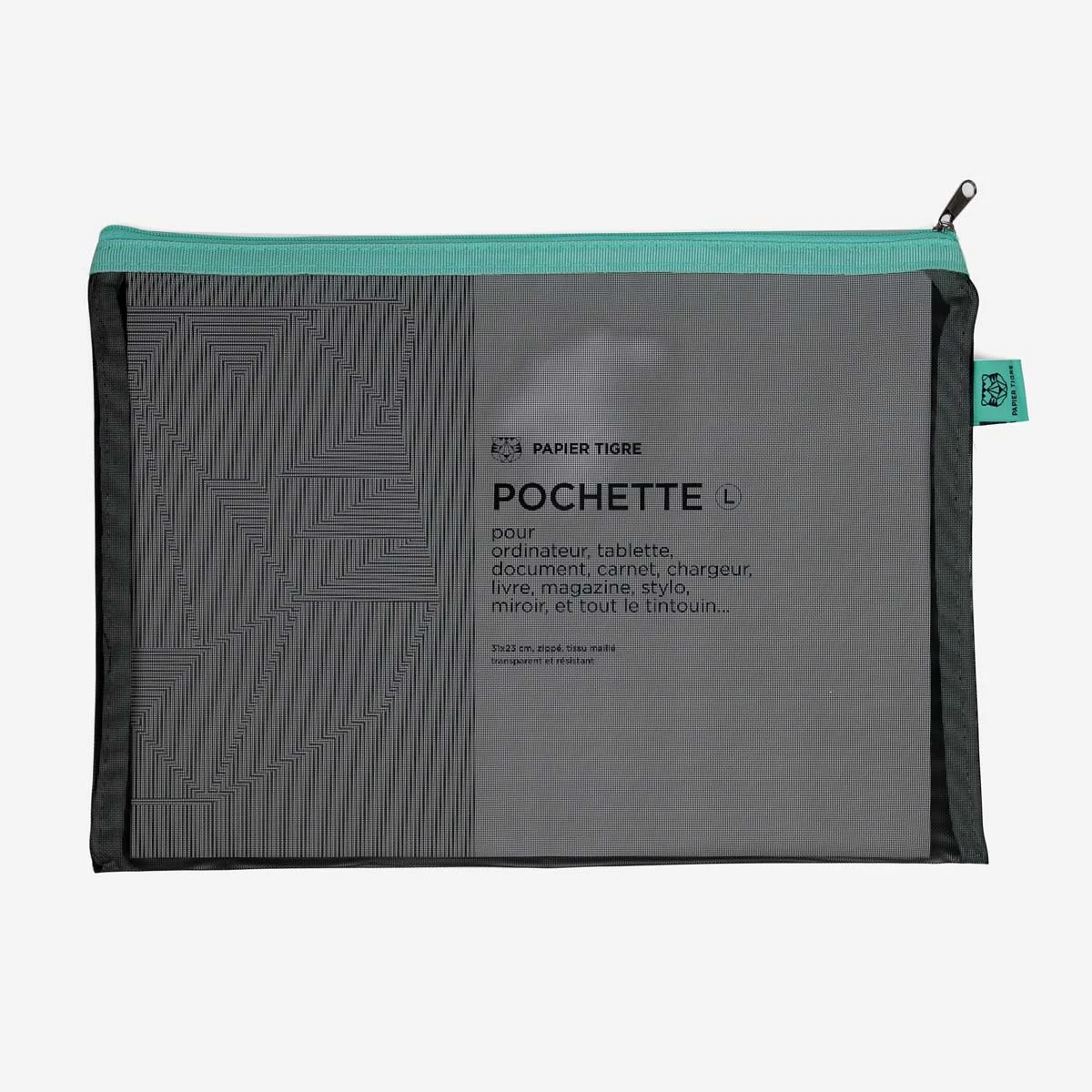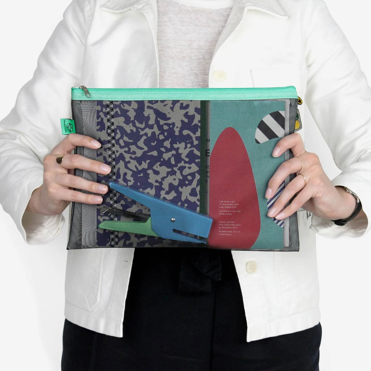 Ein wunderbares Mäppchen aus Netzgewebe für Dein Notizbuch, eine Menge lose Blätter – es ist perfekt für alles bis zur Größe A4.