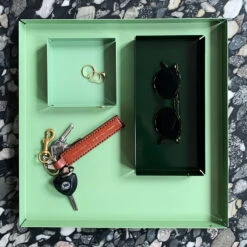 Lege in deine POI Ablagen Schlüssel, Schmuck, oder Stifte. Benutze sie für Papiere, oder als Tablett. Die vielseitig einsetzbaren Ordnungshelfer aus pulverbeschichtetem Stahl sind ein Hingucker auf Tisch und Regal – und ein perfektes Geschenk für alle Design-Liebhaber.