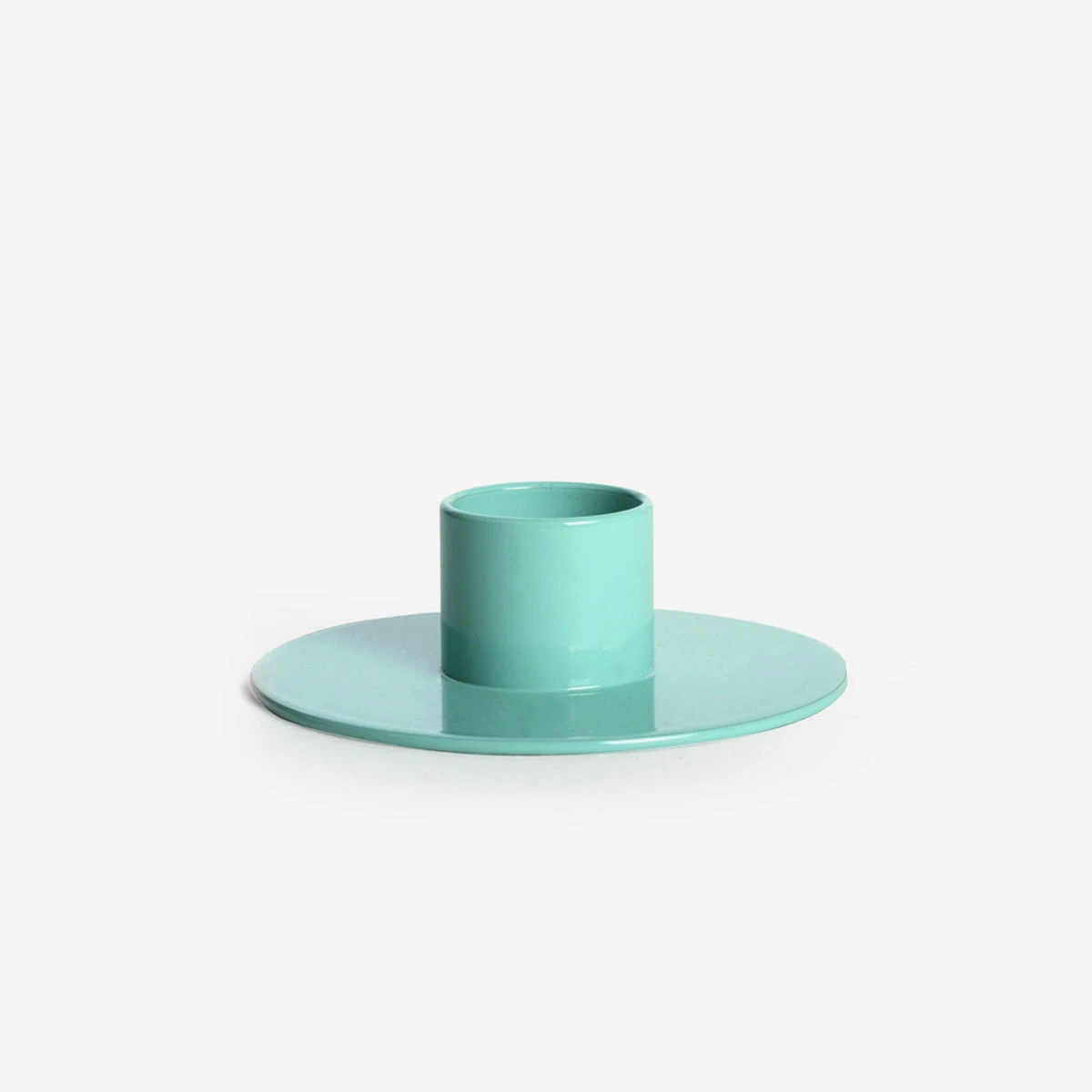 Schlichte reduzierte Form, aber gerne auch mal poppig pulverbeschichtet: der Kerzenhalter kann schön Ton-in-Ton mit einer eingefärbten Kerze oder extra im bunten Kontrast mit ihr dekoriert werden.
