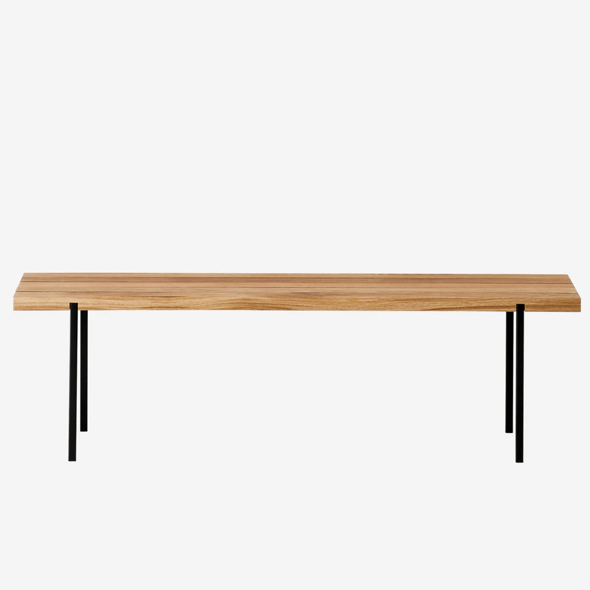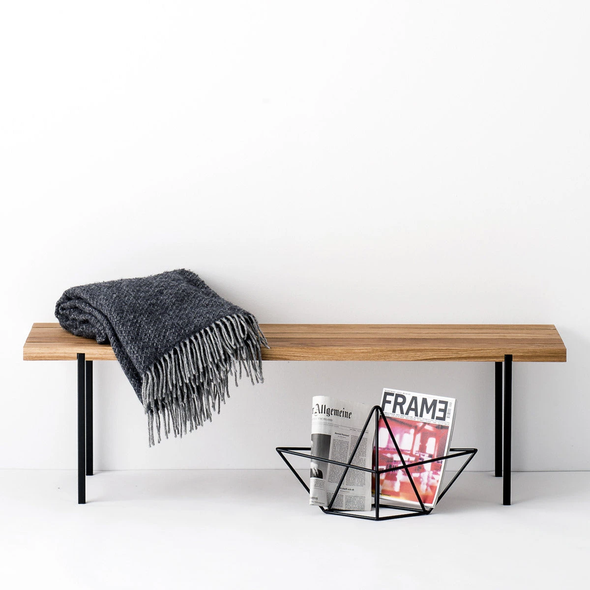 Die Sitzbank Eiche ist in jedem Raum ein Hingucker: Die massive Sitzfläche steht im Kontrast zu den filigranen Beinen, der warme Holzton hebt sich deutlich von den schwarz pulverbeschichteten Beinen ab.