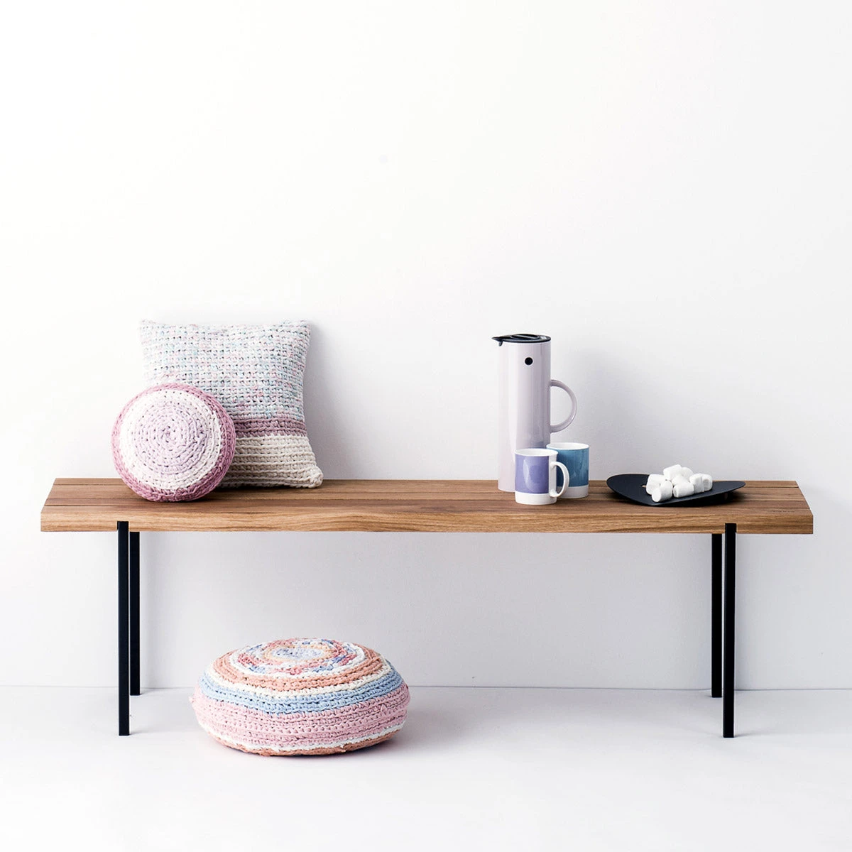 Die Bank ist in drei Größen erhältlich und in vielen Bereichen der Wohnung einsetzbar: Klassisch am Esstisch und am Kamin, im Eingangsbereich oder etwas ausgefallener als Ablage im Schlafzimmer.