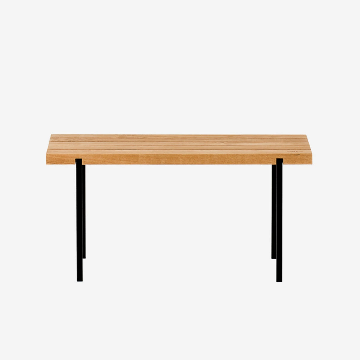 Die Sitzbank Eiche ist in jedem Raum ein Hingucker: Die massive Sitzfläche steht im Kontrast zu den filigranen Beinen, der warme Holzton hebt sich deutlich von den schwarz pulverbeschichteten Beinen ab.