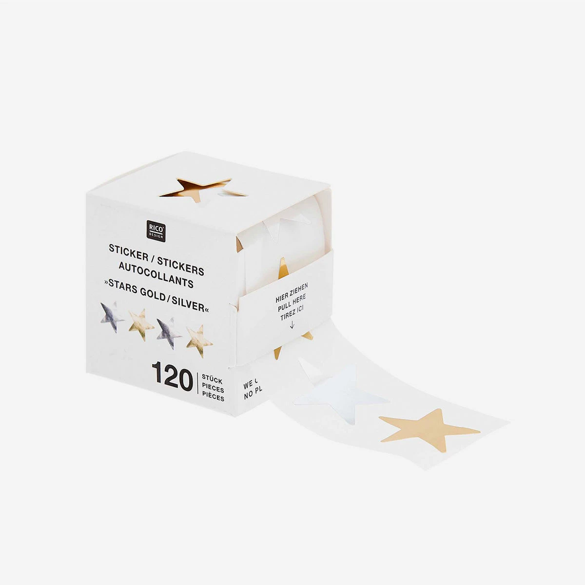 Mit 120 tollen Sternen-Stickern auf der Rolle kannst du so ziemlich alles verzieren, was dir in die Finger kommt: Geschenke, Weihnachtspost, Notizbücher, Adventskalender, Einladungen, und jede Bastelei.