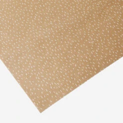 Weiße Sticks auf unprätentiösem braunem Packpapier im Siebdruck gedruckt. Ein Bogen ist ca 50 × 70 cm groß.