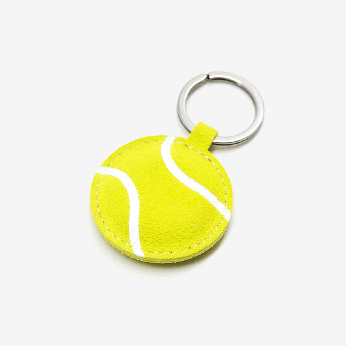Wunderschöner handgemachter Schlüsselanhänger aus neongelbem Wildleder für alle Tennisfans!