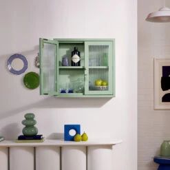 Hier ist The Kit von Mustard – ein kleiner Wandschrank, der irgendwie alles kann. Das Design ist eine Mischung aus Retro-Charme und modernem Minimalismus. The Kit ist perfekt für alles, was schnell griffbereit sein muss: Schlüssel, Cremes, die eine Tasse, die du immer benutzt. Die Medaillongriffe geben ihm diesen leicht nostalgischen Touch, und der Emaille-Schlüsselring ist so ein kleines Detail, das du einfach magst, ohne groß drüber nachzudenken. Klein und nützlich – The Kit macht das Leben ein bisschen leichter, ohne sich in den Vordergrund zu drängen. Schlicht, praktisch und irgendwie einfach cool.