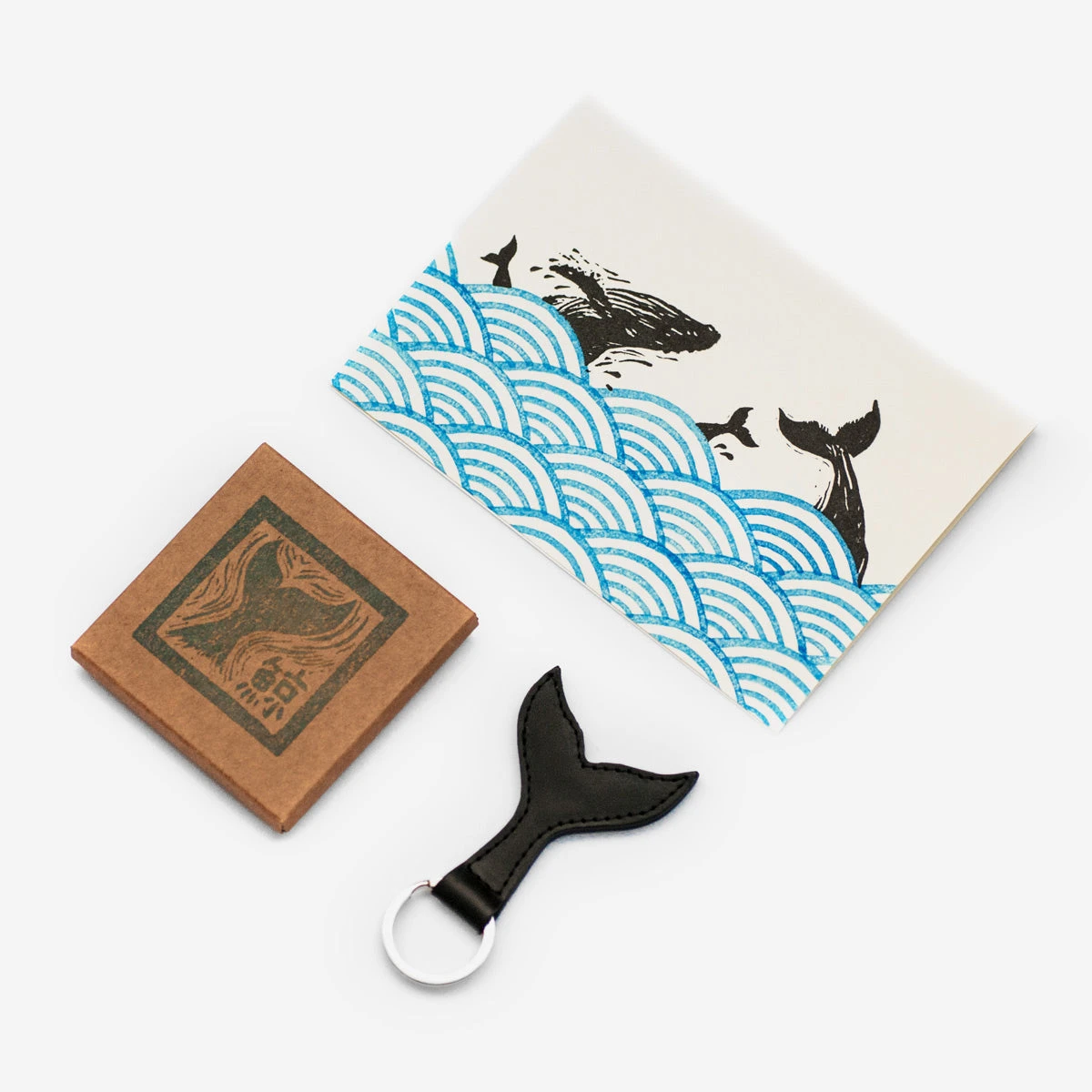 Wunderschöne handgemachte Schlüsselanhänger aus Kuh-Leder in Form einer Wal-Flosse.